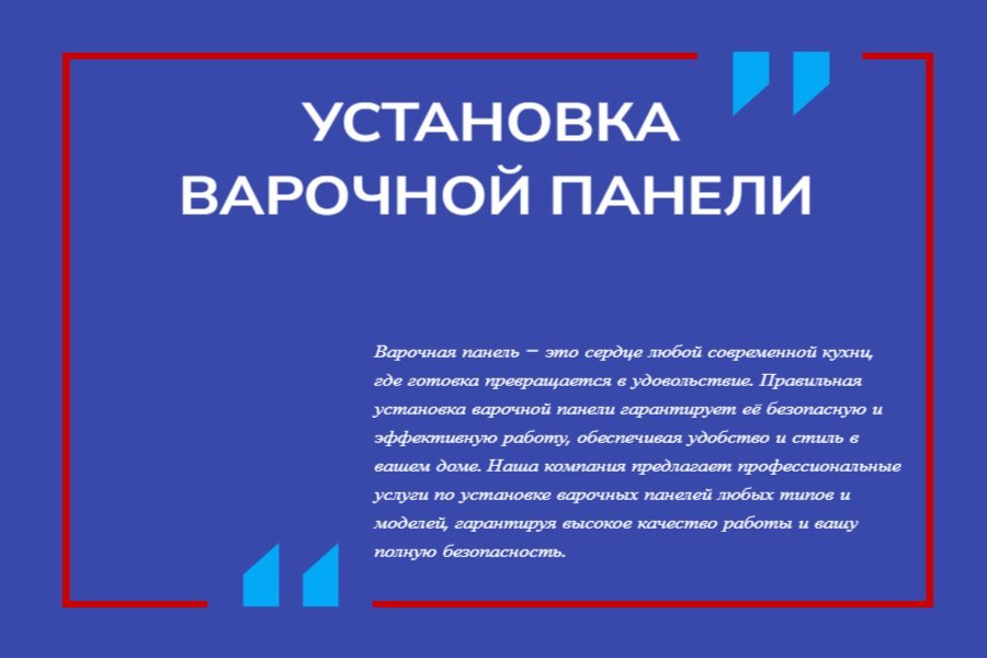 - Гарантия на выполненные работы. Мы уверены в качестве наших услуг и предоставляем гарантию на все выполненные работы. Если в течение гарантийного срока возникнут какие-либо проблемы с установленной варочной панелью, мы оперативно устраним их без дополнительных затрат для вас.