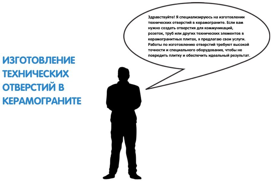 - Оценка и планирование На начальном этапе мы обсудим ваши требования и особенности проекта. Я помогу определить оптимальные размеры и расположение отверстий, чтобы они соответствовали вашим нуждам и не нарушали целостность плитки.