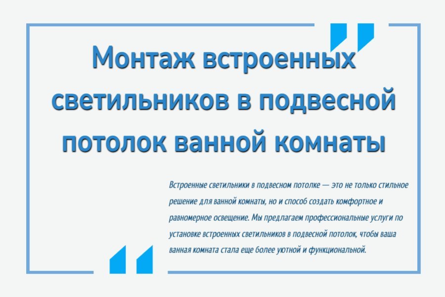 Монтаж встроенных светильников в подвесной потолок — это идеальный способ улучшить освещение в ванной комнате. Доверьте эту задачу профессионалам, и результат вас приятно удивит!