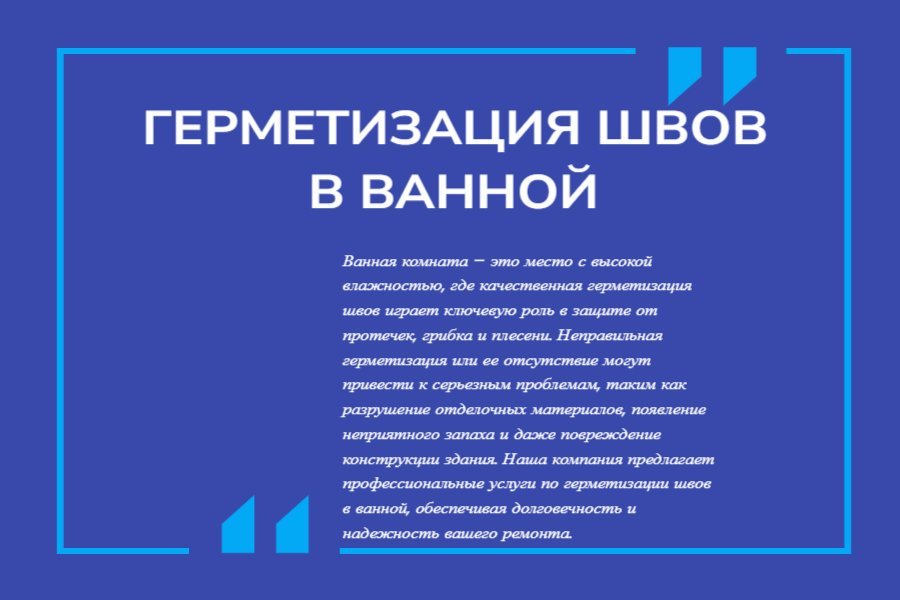 5.Индивидуальный подход. Каждая ванная комната имеет свои особенности, поэтому мы учитываем все нюансы вашего помещения. Наши мастера подберут подходящий тип герметика и предложат наилучший метод герметизации, чтобы ваш ремонт был долговечным и эстетически привлекательным.